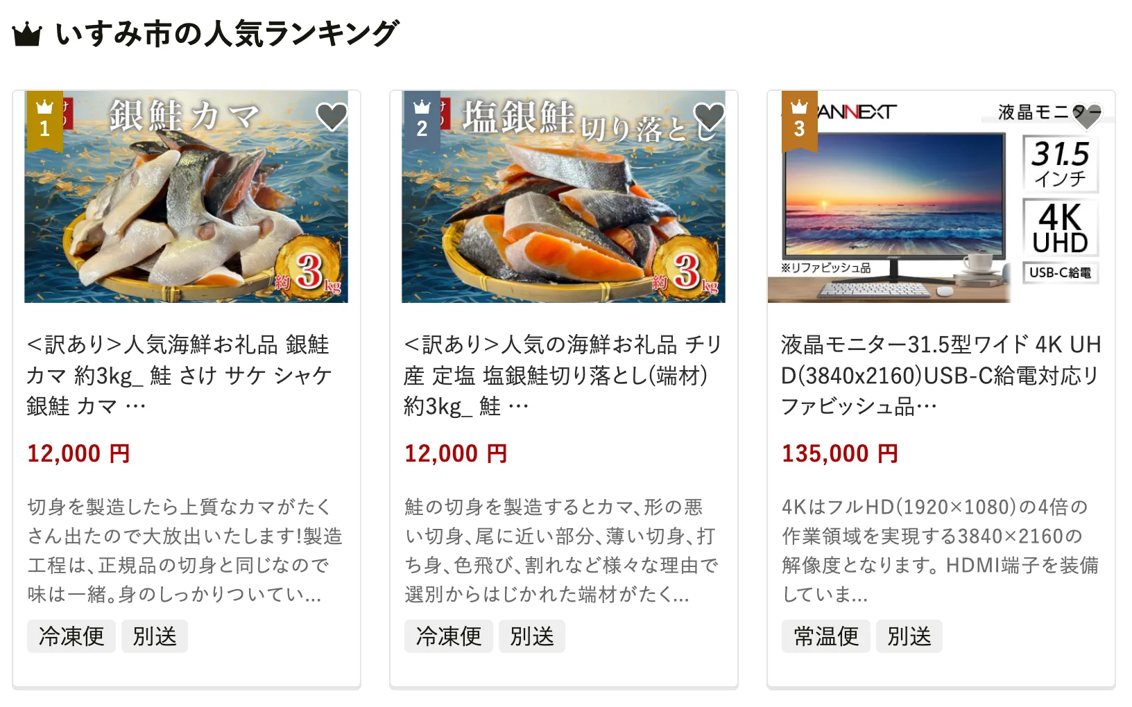 いすみ市で人気の返礼品は、「銀鮭カマ 約3kg」です。