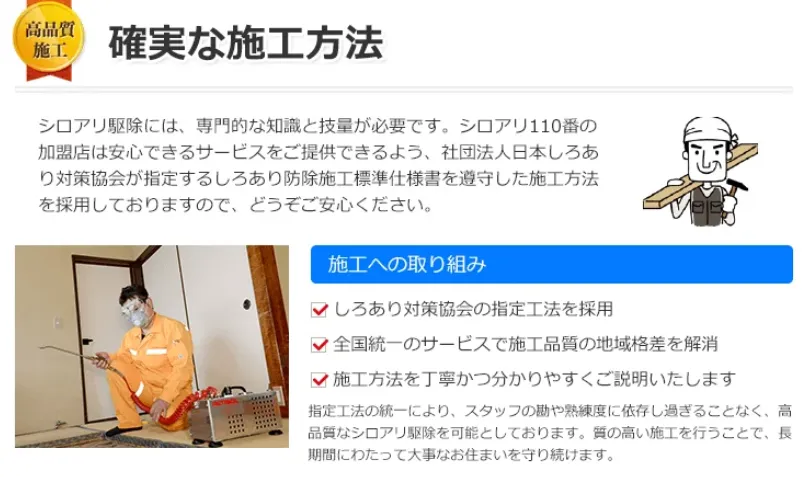 「安かろう悪かろう」ではなく、価格と品質の両面で高い満足度を追求している点が、シロアリ110番が多くの人に選ばれている理由と言えるでしょう。